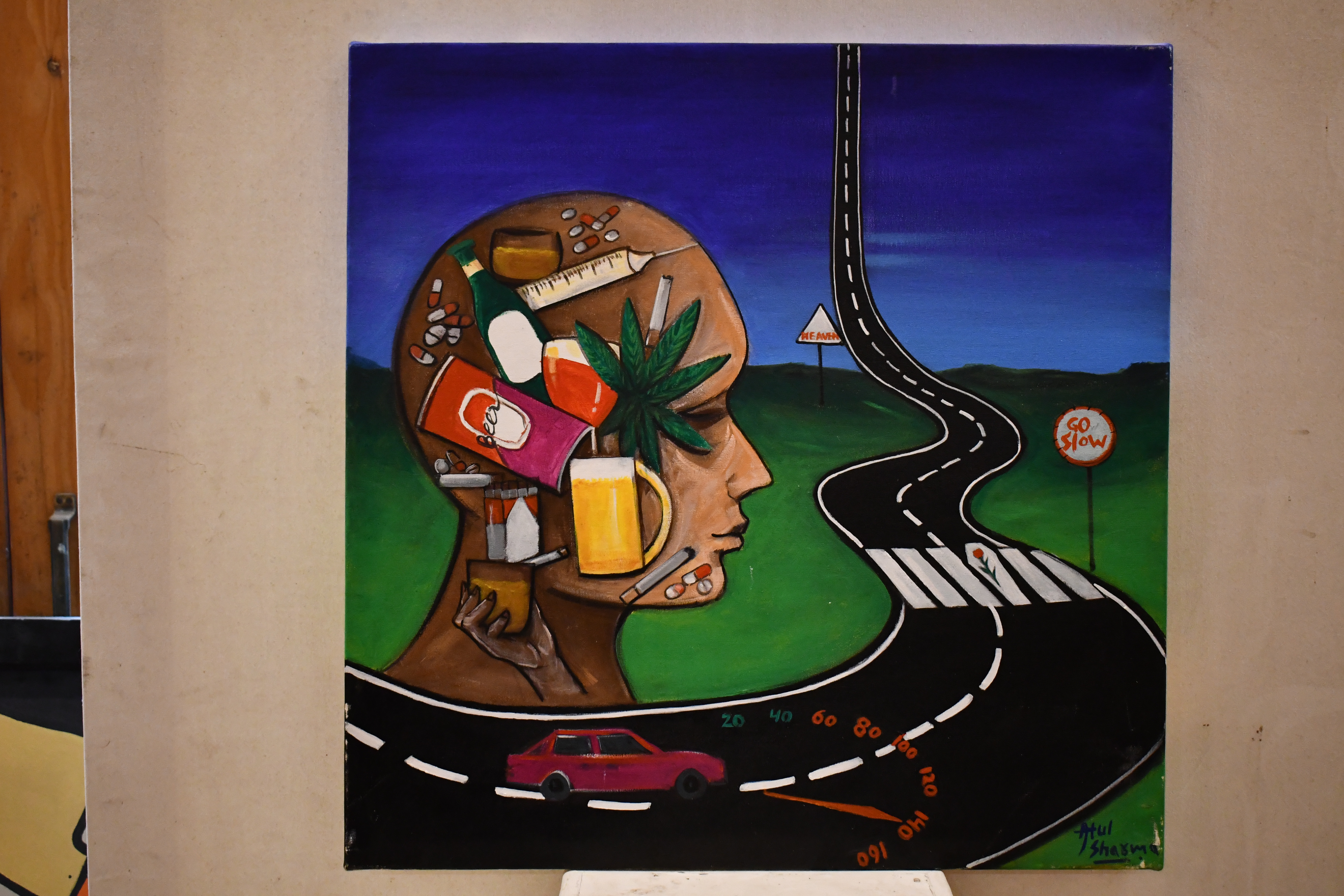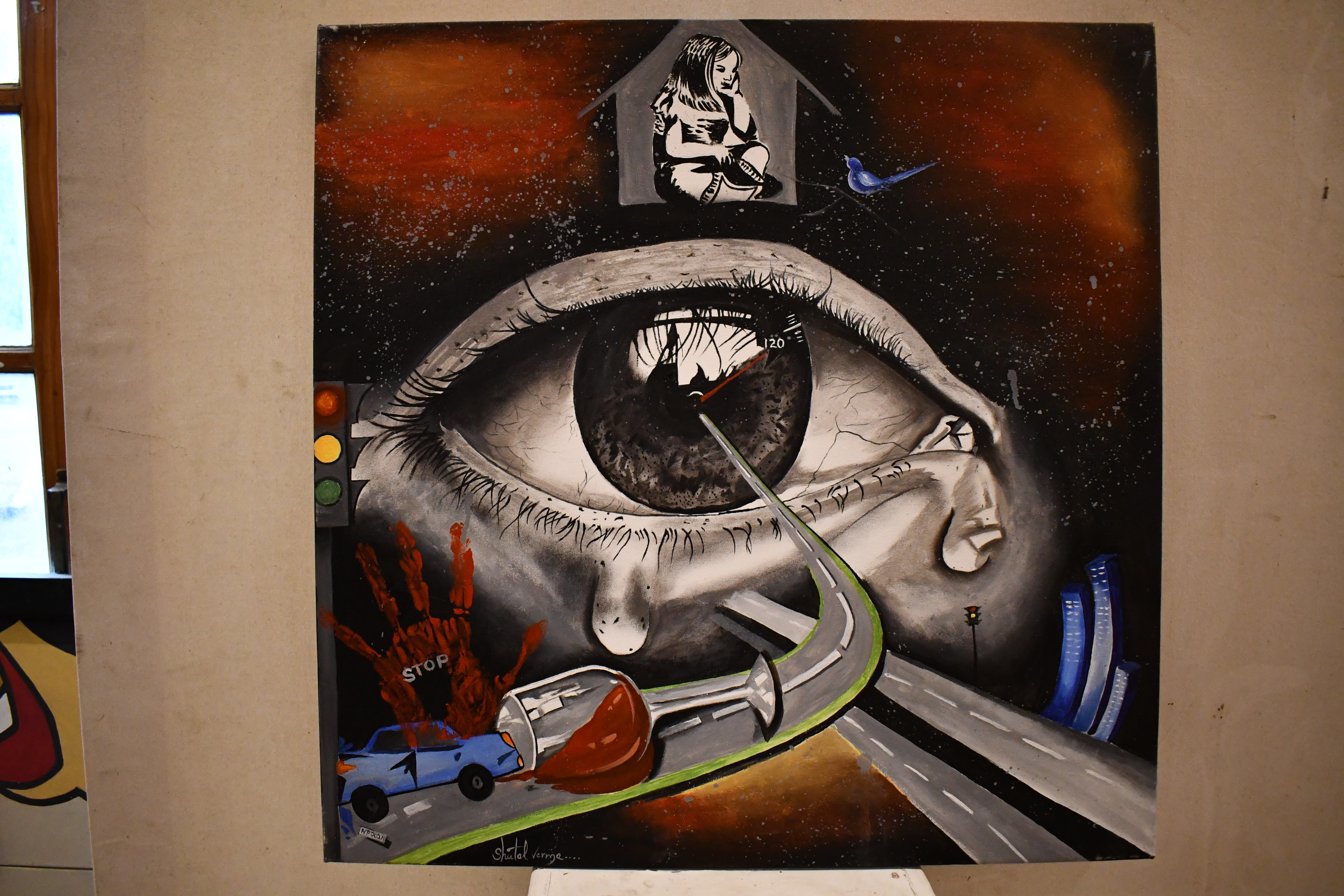 Painting competition conducted during the National Road Safety Month 2021 Dep. of visual arts HP, University.